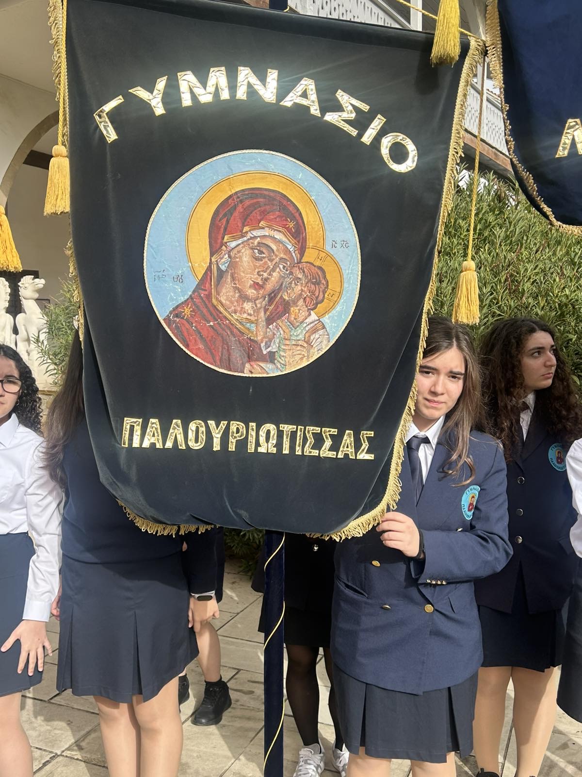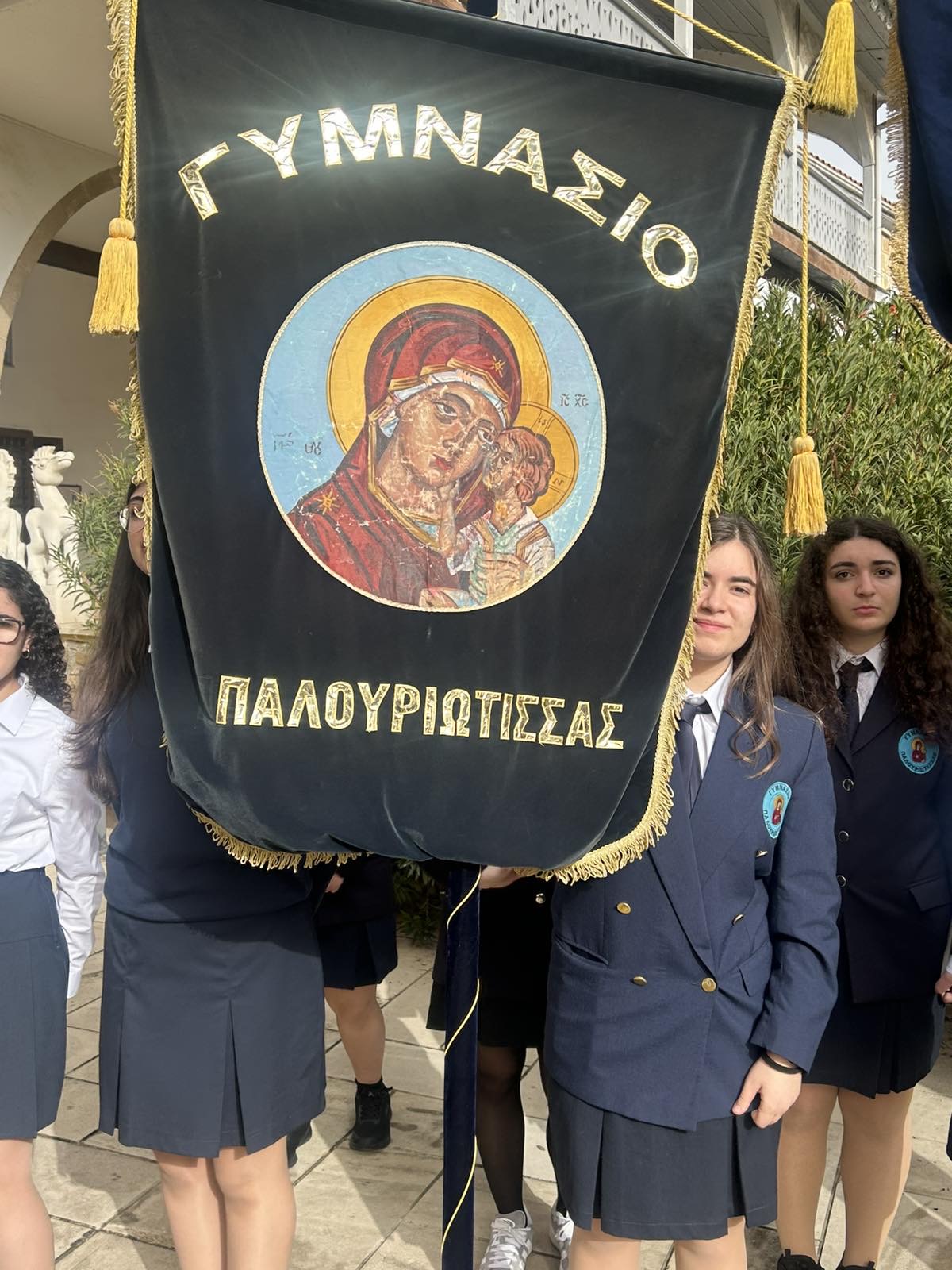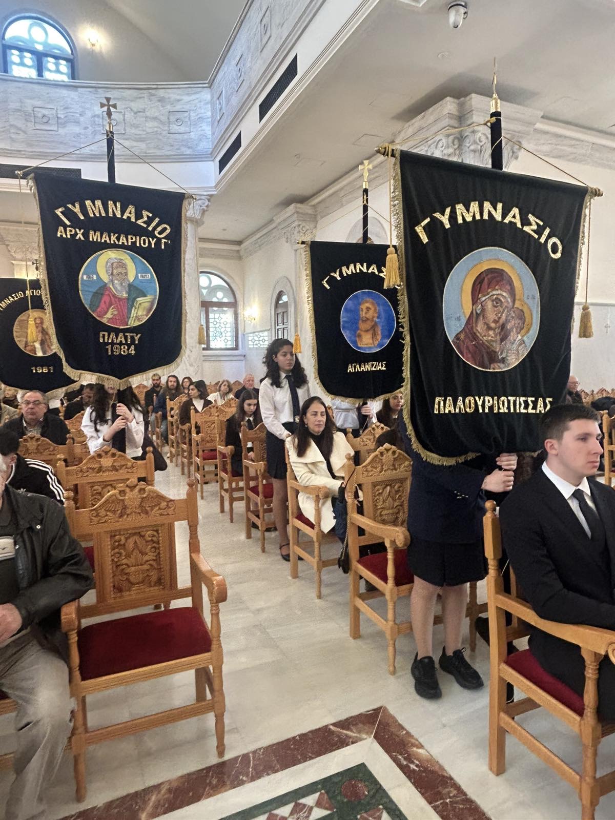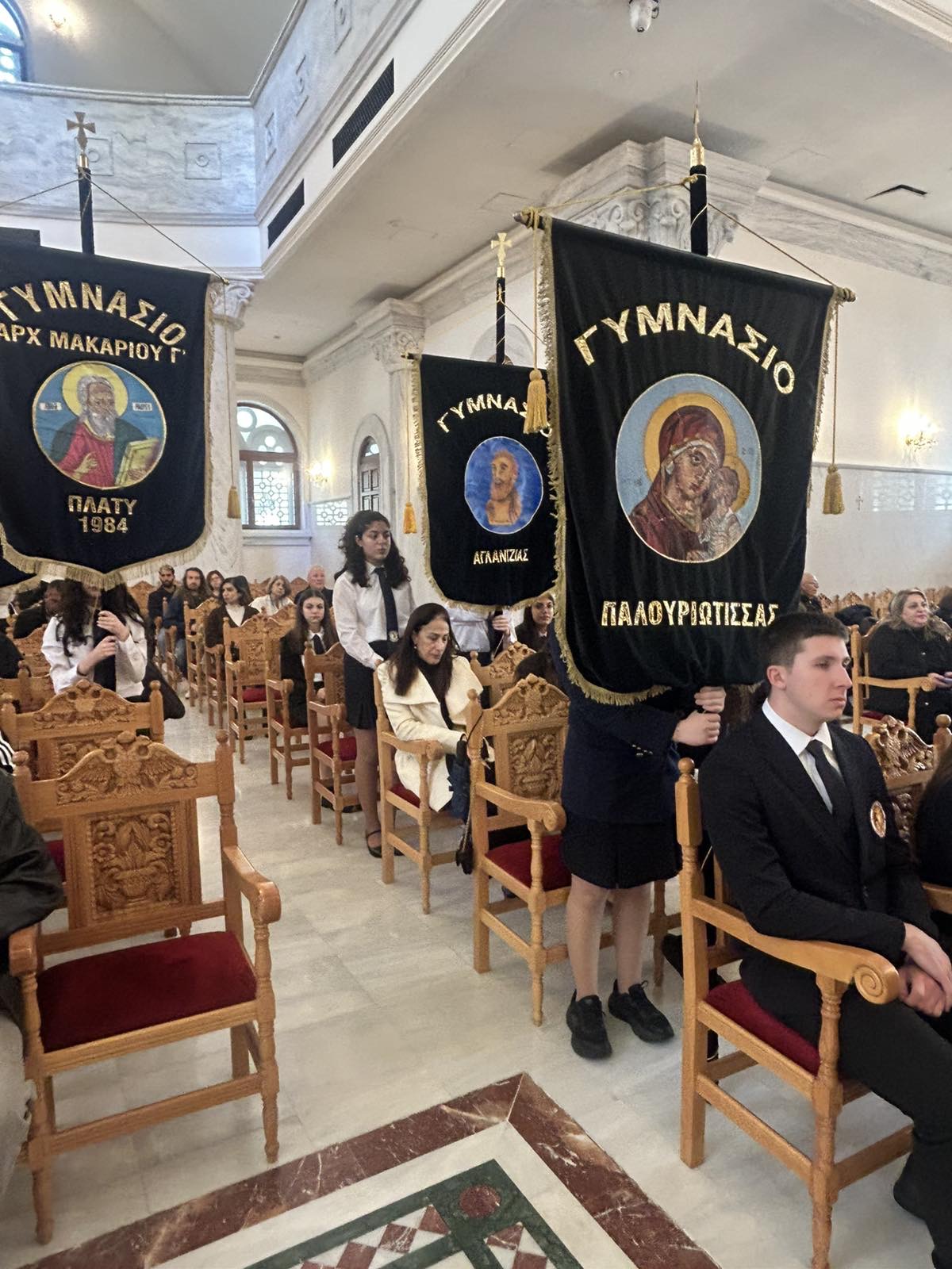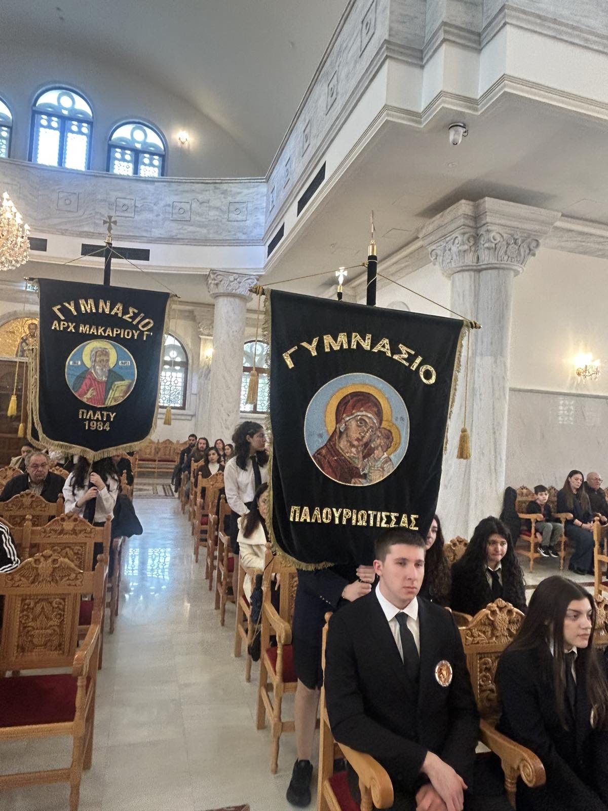 Ανήμερα της εορτής των Τριών Ιεραρχών, οι μαθήτριες του αγήματος του σχολείου μας Παπαναστασίου Γεωργία (Γ4), Γρηγορίου Κορίνα (Γ2) και Αλετρά Στυλιάνα (Γ3) καθώς και η Πρόεδρος του Κ.Μ.Σ. Αναξαγόρου Πάολα (Γ4), εκπροσώπησαν το σχολείο μας σε μνημόσυνο που τελέστηκε στον Καθεδρικό Ναό Αποστόλου Βαρνάβα, προς τιμή των Ιδρυτών, Ευεργετών και Σχολικών Υπαλλήλων των Σχολείων Λευκωσίας.